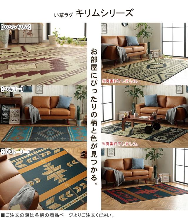 独特の幾何学模様と鮮やかな色使いで、お部屋にエスニック要素をお洒落にプラスしてくれるい草ラグ。 い草の織りにこだわった商品で、1つ1つの色がはっきりと出るように工夫しています。 使用している国産のい草(九州産)は一本一本が太く、表皮が厚く繊維がキメ細かいので弾力性があり、耐久性に優れています。 また、い草には空気の自然浄化作用、湿度の調節作用などがあります。 汚れにくくお手入れが簡単で、使用するうちに黄金色に変化し味が出ます。 生地表面には、青森県のヒバの木から抽出した「ヒバエッセンス」をメーカー独自の技術で加工しました。 ヒバエッセンスにはヒノキチオールという天然物質が含まれており、抗菌防臭効果があります。 裏面は不織布なのでお部屋の床を傷つける心配もありません。 使用しない時はコンパクトに折りたためるので収納も簡単です。 ※洗えません。 ■キリムシリーズの別柄はこちら↓ 【DXキリー】 【DXストーリー】 ■その他のカーペット・ラグはこちら↓ カーペット・ラグ |