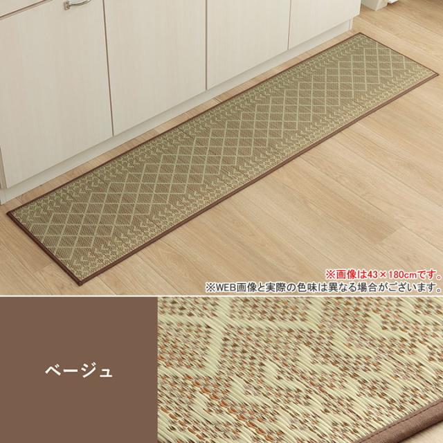 い草のキッチンマット カラン 43×180cm 送料無料 日本製 幾何学 滑り止め 抗菌 防臭 消臭 紋織 ウレタン ナチュラル