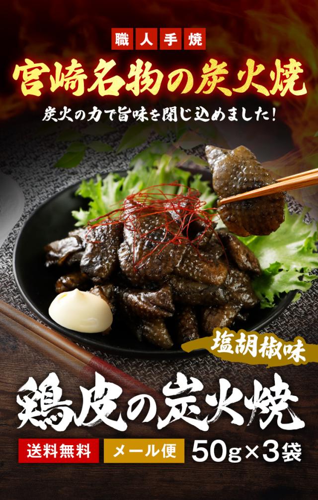 おつまみ 鶏皮 炭火焼 塩胡椒味 50g×3袋 セット お試し 送料無料 宮崎名物 塩こしょう 国産 鶏肉 常温保存 非常食 おかず ギフト とり皮 焼き鳥 焼鳥 やきとり チップス 惣菜 旨さには 訳あり レトルト 食品 1000円ポッキリ 鶏皮焼き鳥 串 ぐるぐる じゃない [メール便]