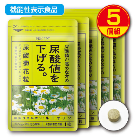 終売・賞味期限間近のため訳あり 賞味期限2026年5月14日 ゆうパケット配送 尿酸値が高めな方の尿酸値を下げる 尿酸菊花粒 機能性表示食品 30粒30日分 5個組 ルテオリン サプリ 健康食品(通常価格9072円)