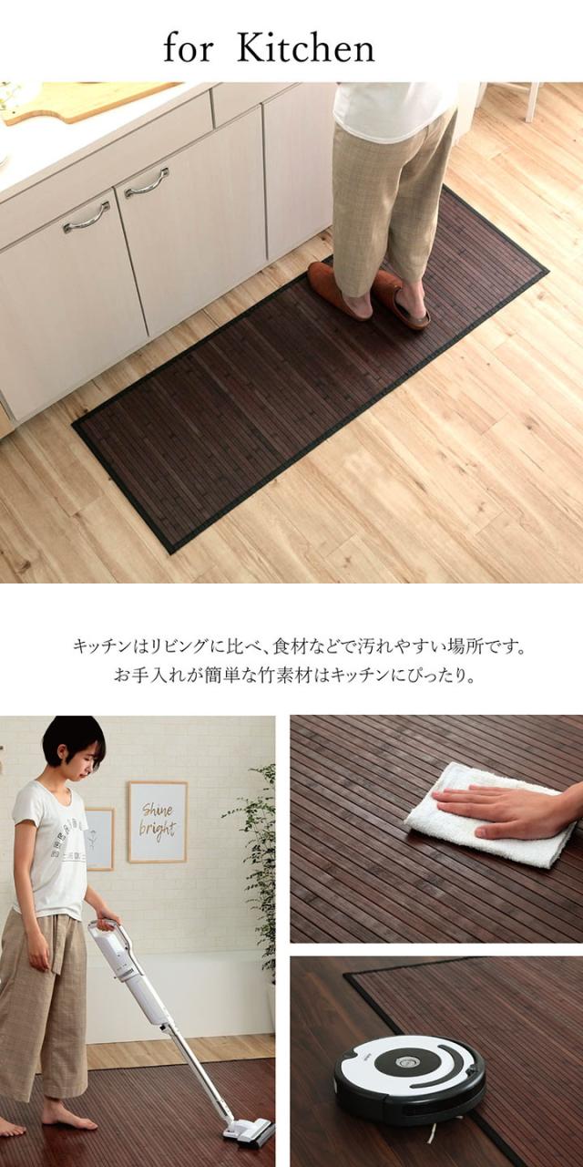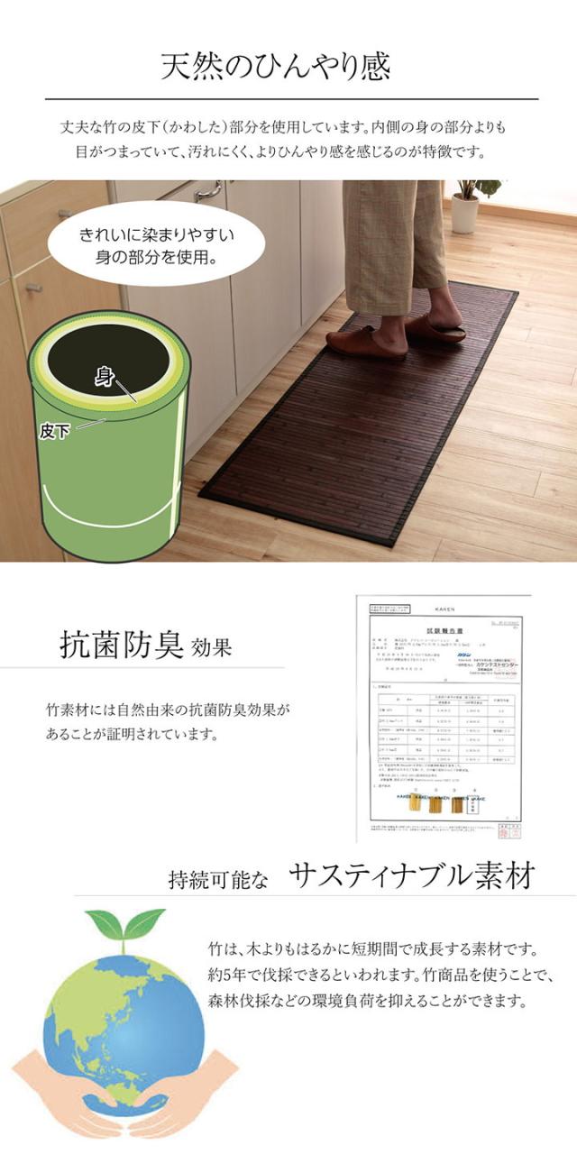 竹のキッチンマット ユニバース 50×200cm 竹 天然竹 バンブー 敷物 マット 竹マット バンブーマット 無地 糸なしタイプ 自然素材 丈夫 ひんやり 孟宗竹 皮下使用 洗濯不可
