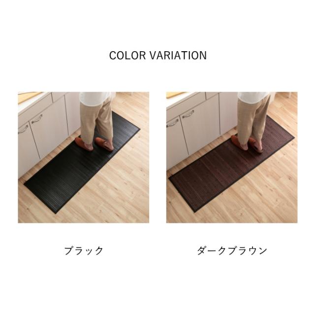 自然の素材で涼を感じるライフスタイル。 孟宗竹の表面付近の目がぎっしり詰まった部分のみを使用した、天然竹のキッチンマットです。 ブラック・ダークブラウンの2色からお選びください。 表面部分は特に汚れにくく耐久性に優れ、熱伝導率が高いため、ひんやり感も抜群です。 表面の肌触りを滑らかにするため、竹の色を揃えるためにUV塗装を施しています。 無垢材を使用し、あたたかみのある質感に仕上げました。 モダンなカラーでお部屋をスタイリッシュに演出します。 シンプルな糸無しの張り付けタイプです。 素材は皮下17mm幅の竹ヒゴを使用しています。17mmの竹ヒゴは大きく育った竹からしか取れない素材です。 竹は他の木材と比べると格段に成長が早く(3〜5年で成竹)、持続的生産が可能な環境に優しいサスティナブルな素材です。 モダンカラーの『ユニバース』シリーズはこちら↓ ■竹のキッチンマット『ユニバース』 【50×150cm】 【50×200cm】 【50×250cm】 【80×240cm】 ナチュラルカラーの『ローマ』シリーズもございます。↓ ■竹のキッチンマット『ローマ』 【50×150cm】 【50×200cm】 【50×250cm】 【80×180cm】 【80×240cm】 ■その他のカーペット・マットはこちら↓ カーペット・マット |