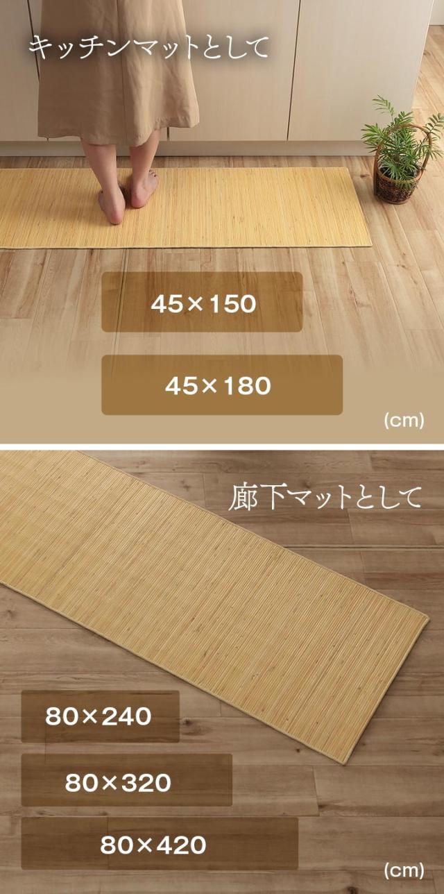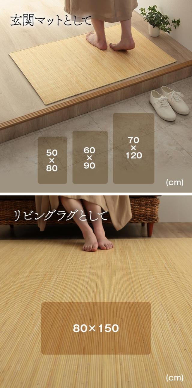 インドネシア原産の3年〜5年育成されたA級の籐(セガ籐)を使用している、むしろ織りのラタンカーペットです。 素材も均一化を図るため機械で一定の厚さに整えたものを使用しています。 また本間1間(幅191cm)あたりに39穴と通常(通常規格は27〜35穴)より糸数を増やしていますので、目が揃っていて肌触りがよく綺麗です。 アジアンらしさを感じる籐は日本でも昔からなじみのある素材で、和の空間とも相性がよいです。 籐の耐久性は40年以上。初めは乳白色ですが、使い込むほどに綺麗なあめ色に変化し、美しい籐のツヤを愉しめます。 籐は調湿機能に優れており、汗ばむ夏場でもベタつかず、歩いても、座っても気持ちいい。 ひんやりとした天然の冷感素材は、素足の暮らしにも最適です。 裏面は滑り止めラバーを貼っています。 自然素材を使ってハンドメイドで仕上げているため、色・形・サイズ・編み方に個体差があります。予めご了承ください。 ■■■お部屋に合わせて選べる豊富なサイズ展開■■■ ■ジャワ 籐むしろ ラグタイプ(滑り止めなし) ◇リビングラグにおすすめ↓ 【140×200cm】 【200×200cm】 【200×250cm】 【200×300cm】 ◇和室敷きにおすすめ↓ 【江戸間2畳】 【江戸間3畳】 【江戸間4.5畳】 【江戸間6畳】 【江戸間8畳】 【本間2畳】 【本間3畳】 【本間4.5畳】 【本間6畳】 【本間8畳】 ■ジャワ 籐むしろ マットタイプ(滑り止め付き) ◇玄関マットにおすすめ↓ 【50×80cm】 【60×90cm】 【70×120cm】 ◇リビングラグにおすすめ↓ 【80×150cm】 ◇キッチンマットにおすすめ↓ 【45×150cm】 【45×180cm】 ◇廊下マットにおすすめ↓ 【80×240cm】 【80×320cm】 【80×420cm】 ■その他のカーペット・マットはこちら↓ カーペット・マット |