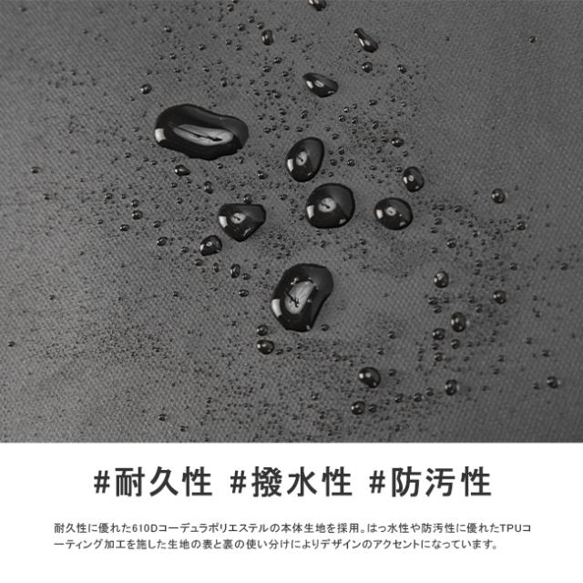 | バーマスの基本コンセプトを踏襲しながらカジュアルスタイルにフィットするシンプルなデザインが特徴。耐久性に優れた610Dコーデュラポリエステルの本体生地に、TPUコーティングを施し水や汚れに強い素材となっています。メインルームは、収納しやすいポケットレイアウト(前面側にメッシュファスナーポケット×1、モバイル機器対応のクッションポケット×1)お財布や手帳などを整理して収納でき、機能性も充実しています。モバイル機器対応のクッションポケットは〜8.3インチタブレット対応可能。(※機器によって入らない可能性がございます。あくまで目安としてお考え下さい)お出かけ時のサブバッグとしても役立ちます。 |