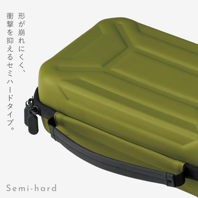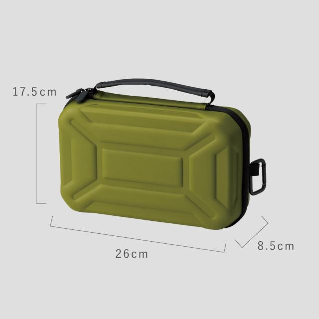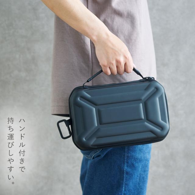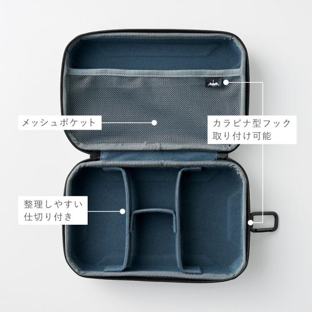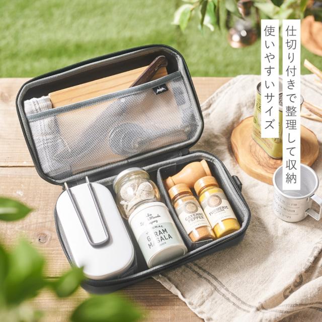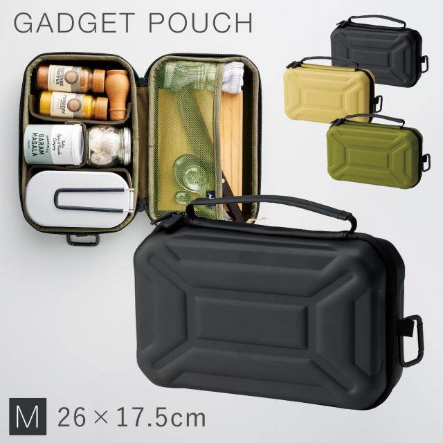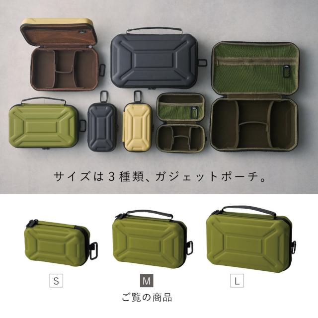 調理器具やスパイス、デジタル機器小物や、トラベル用品なども収納しやすい、Mサイズのガジェットポーチ。セミハードタイプなので、形が崩れにくく、収納した機器類を外部からの衝撃や圧力から守って安全に持ち運ぶことができます。