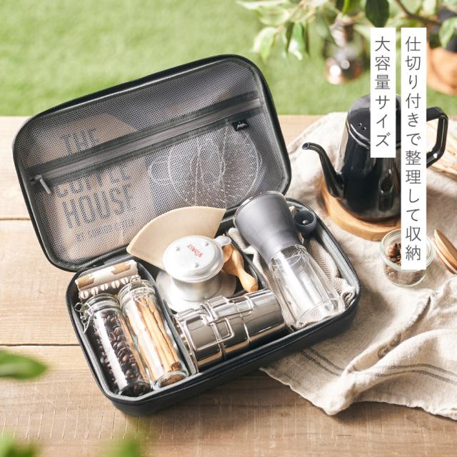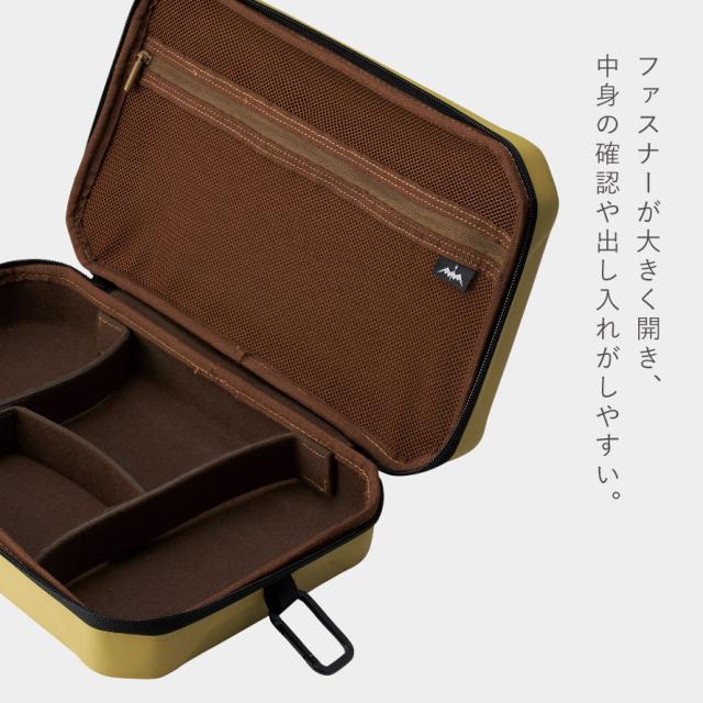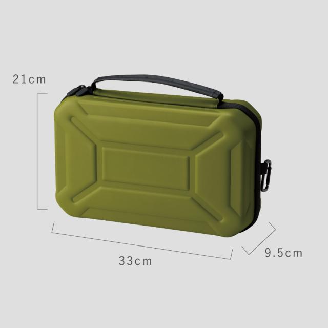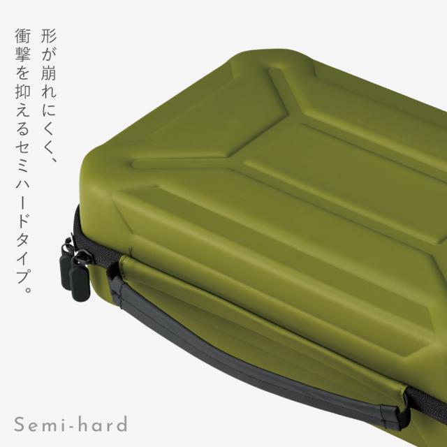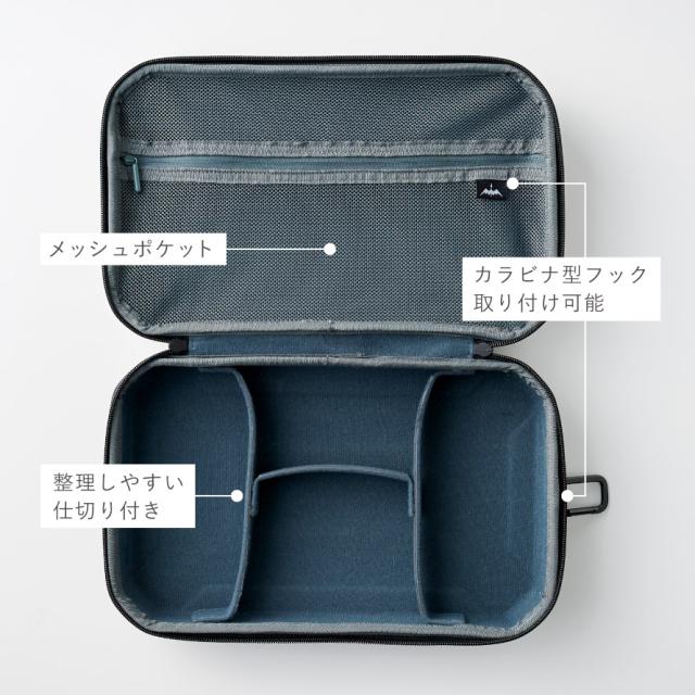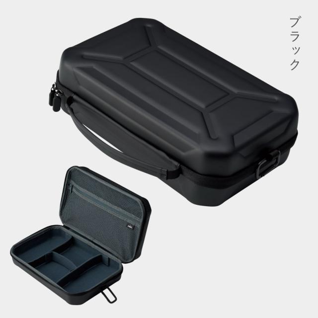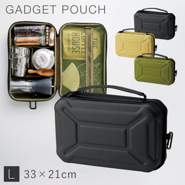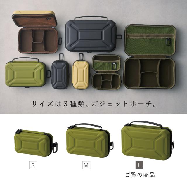 コーヒーグッズや調理器具、ゲーム本体と周辺機器などをまとめて収納可能な、Lサイズで大容量のガジェットポーチ。セミハードタイプなので、形が崩れにくく、収納した機器類を外部からの衝撃や圧力から守って安全に持ち運ぶことができます。