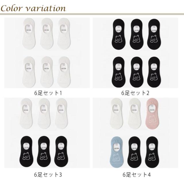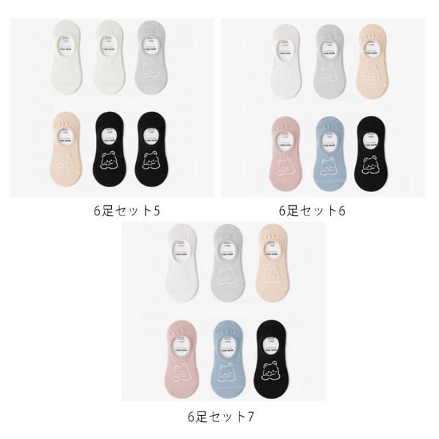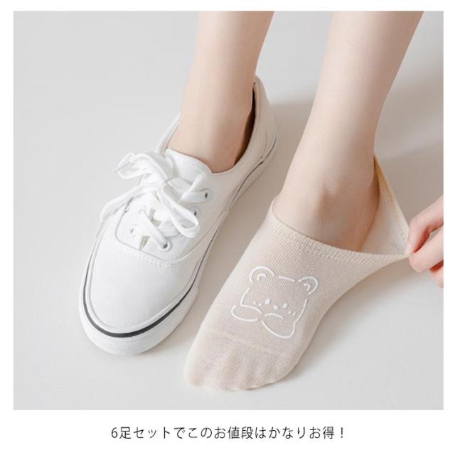 ソックス かわいい くつした 【6足セット】フットカバー 送料無料 スニーカーソックス 通学 女性 クマ おしゃれ 浅履き ショート レディース 婦人 可愛い シリコン滑り止め 通勤 靴下
