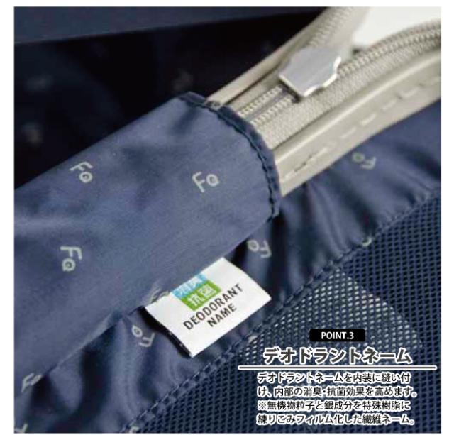 デオドラントネームを内装に縫い付け、内部の消臭・抗菌効果を高めます。