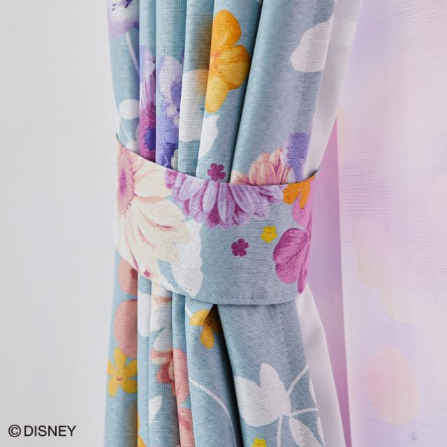 ラプンツェルの髪飾りをイメージした、花柄のドレープカーテン。カラフルで鮮やかな色使いで、お部屋が癒しの空間に。