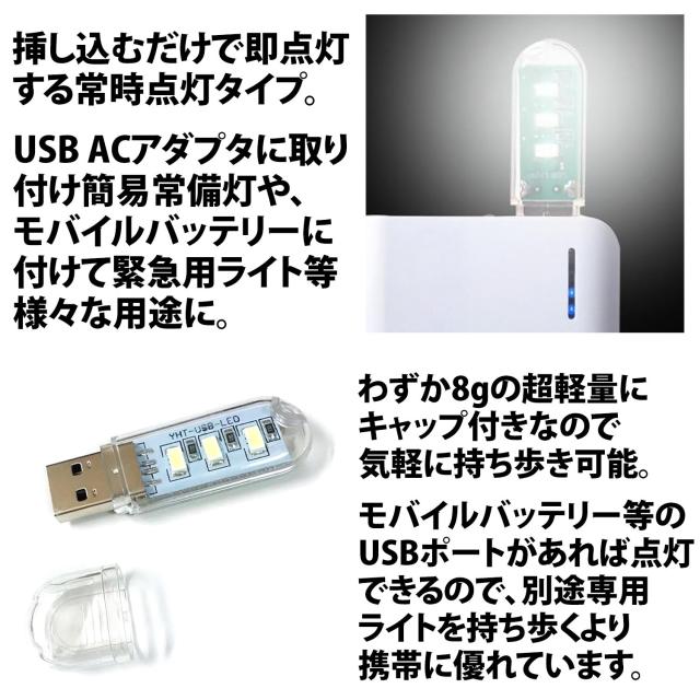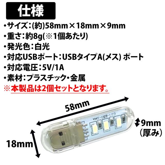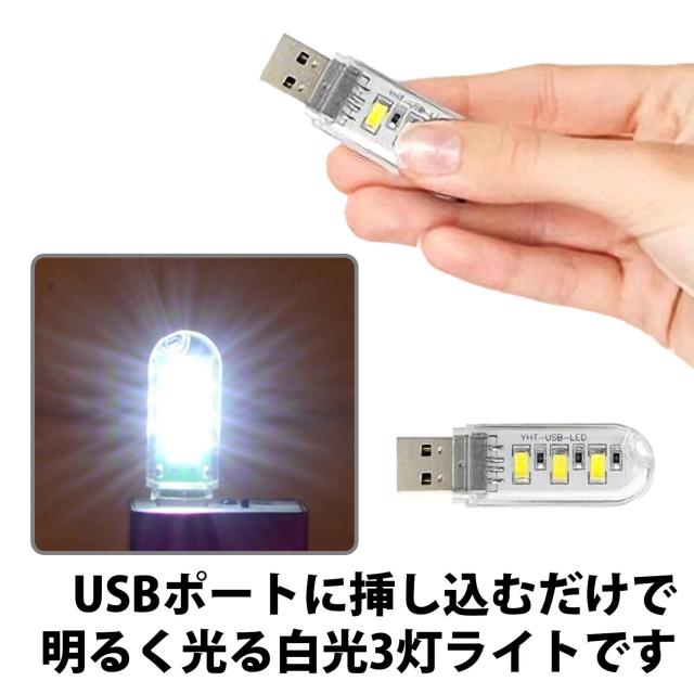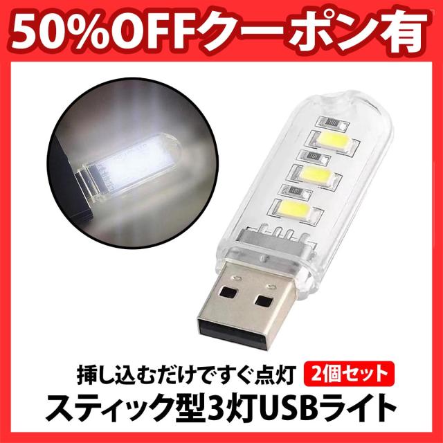 50%offクーポン有 USBライト 2個 セット 白光 片面 LED3灯 2個セット ミニ USB ライト 小型 片面発光 LED 携帯 キャップ 軽量 コンパクト 1W 明るい 車 足元 キャンプ アウトドア LEDライト モバイルバッテリー 便利 非常用 ランタン USB電源 夜景 夜