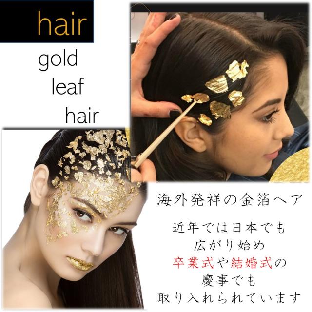 煌びやかな存在感の箔は海外でgold leaf hairと呼ばれている金箔ヘアにも使えます