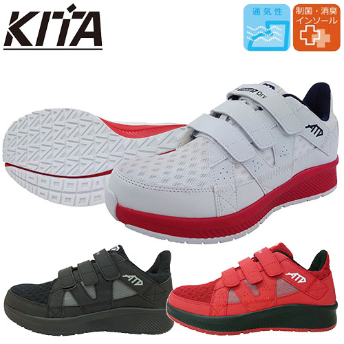安全靴 喜多 メッシュローカットマジックセーフティスニーカー 制菌・消臭 MG5760 マジックテープ スニーカータイプ メッシュ 涼しい 通気 反射材 静菌消臭
