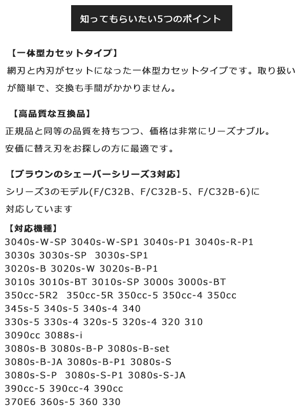 ブラウン 替刃 シリーズ3 互換品 32B 32S BRAUN 網刃 替え刃 電気シェーバー シェーバー 内刃セット 一体型 カセット 髭剃り ブラック ホワイト 互換