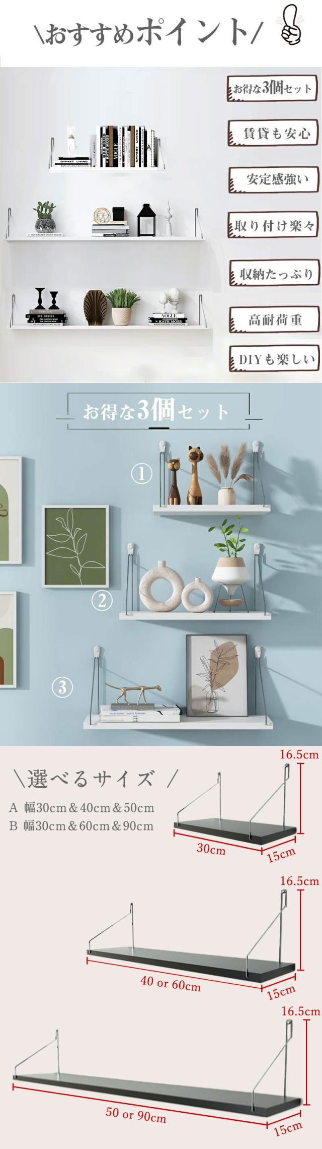 ウォールシェルフ 3点セット 30 40 50cm 取り付け コーナー 壁掛け棚 ウォールラック 棚板 収納 ラック シェルフ おしゃれ DIY かざり棚 壁面収納 壁掛け 北欧 ナチュラル雑貨 シンプル ディスプレイ インテリア 模様替え 部屋 省スペース ホワイト ブラック ブラウン