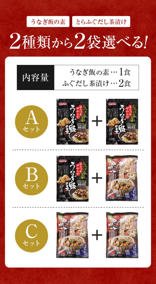 うなぎ飯の素 とらふぐだし茶漬け 2袋 選べる 送料無料 きざみ うなぎ 蒲焼 ふぐ 鰻 フグ 出汁 お茶漬け ご飯のお供 常温保存 食品 お土産 高級 プレゼント ギフト 人気には 訳あり [メール便]