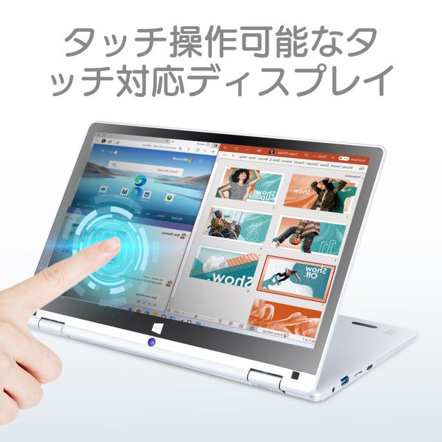 | 商品特徴 | ●360度画面回転により、さまざまなフォルムでの活用が可能なフォルダー型コンバーチブル。11.6型 HD(1366*768)液晶搭載薄型, タッチパネル対応 |
