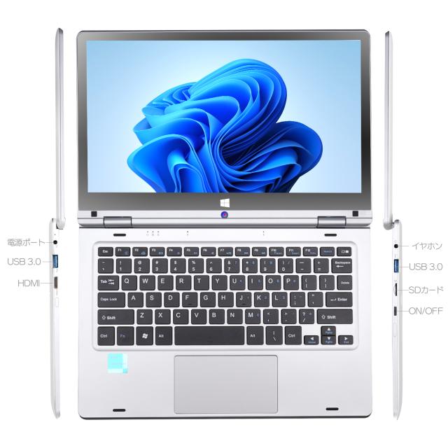 新品ノートパソコン 11.6インチ VETESA Office付 Windows11 Celeron N4020 最大2.8GHz メモリ6GB/SSD512GB ノートPC 360度回転画面 初期設定済