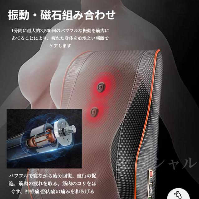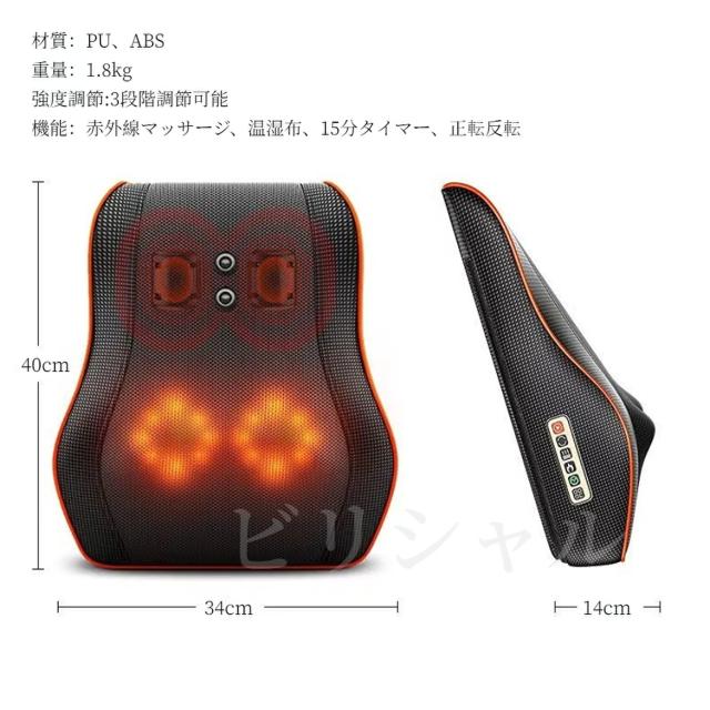 - プレゼント相手が、事務仕事していて肩こりや腰痛に悩まされているので購入、早速使用したら温かくなって揉みほぐし機能もあって、大変良いプレゼントだと言われました。