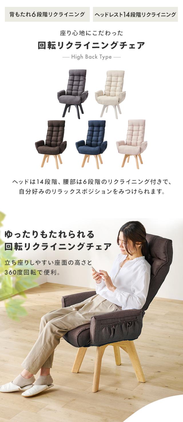 回転ファブリックチェア ハイバック FACN-KHB ブラウン ブルー アイボリー アッシュ ホワイト 全5色 ハイバック 回転チェア チェア 椅子 ファブリック リクライニング 360度 折りたたみ コンパクト ダイニング テレワーク リモートワーク 家庭用 アイリスオーヤマ 送料無料