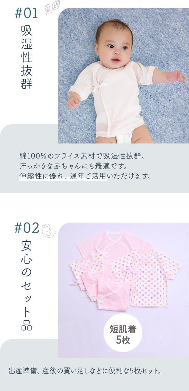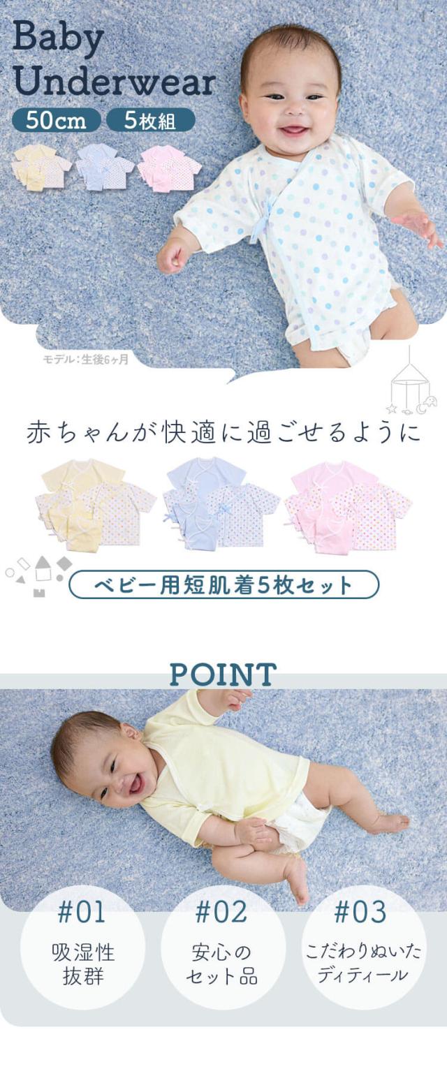 ベビー 肌着 前開き 短肌着 ベビー用 短肌着 紐タイプ 5枚セット 全3色 イエロー ブルー ピンク 肌着 短肌着 インナー 下着 ベビー 赤ちゃん 新生児 日本製 ギフト 敏感肌 出産準備 半袖 綿100% 綿 前開き 吸湿性 伸縮性 通年 ベビー 肌着 送料無料