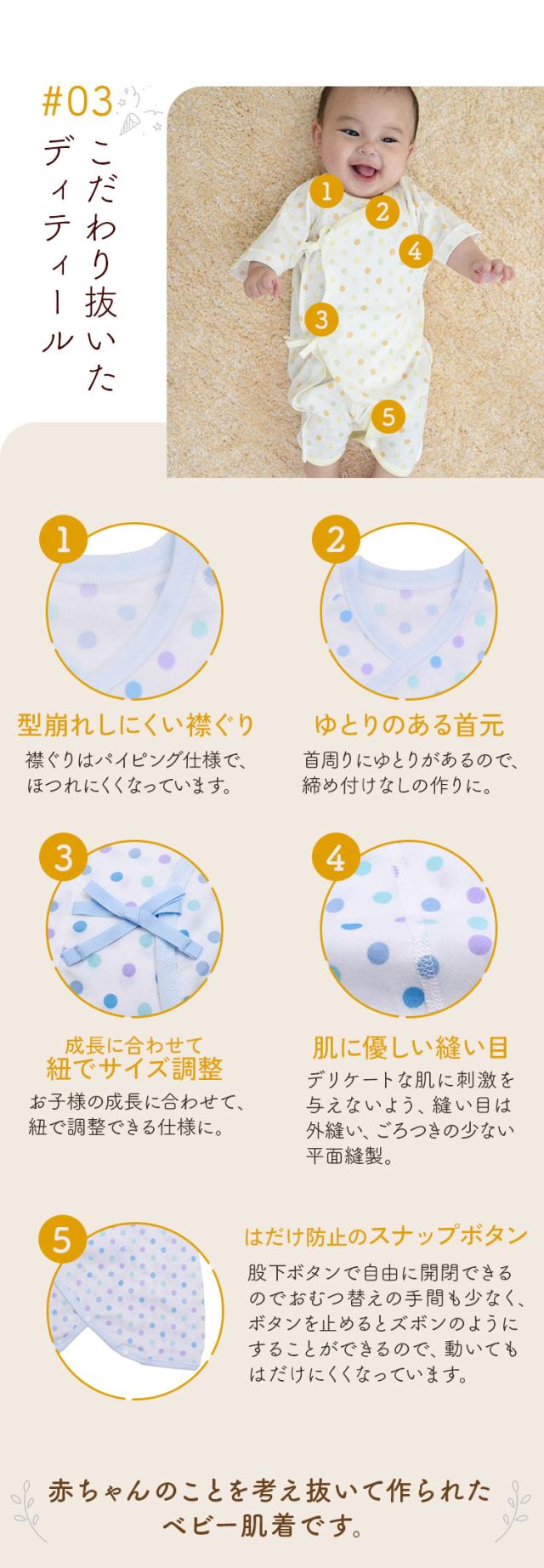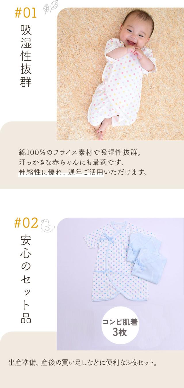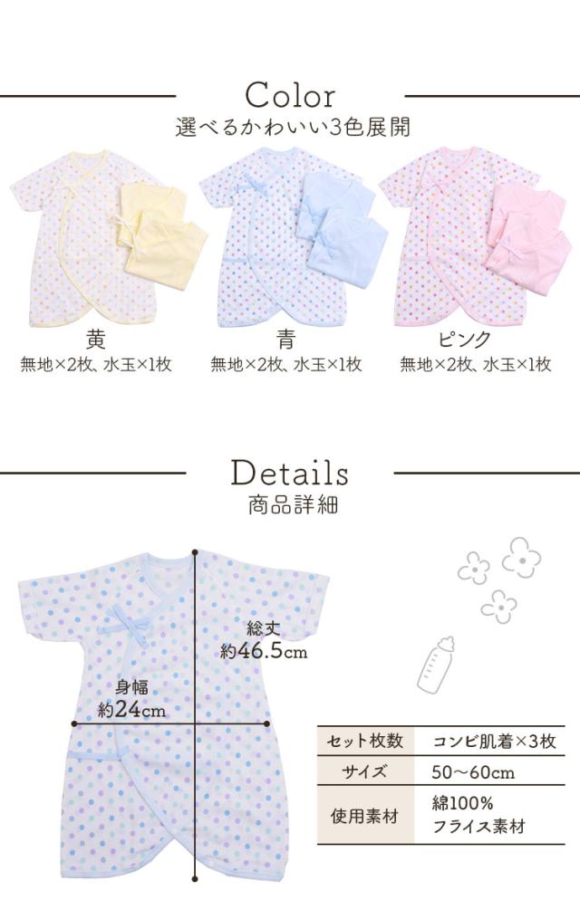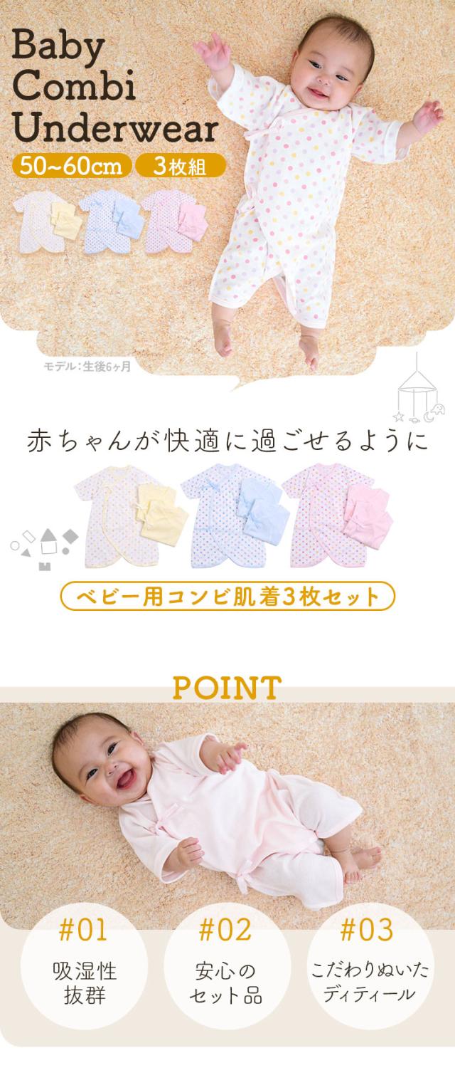新生児 肌着 ベビー肌着 前開き コンビ肌着 ベビー用 コンビ肌着 紐タイプ 3枚 (メール便) 全3色 肌着 コンビ肌着 インナー 下着 ベビー 赤ちゃん 日本製 ギフト 敏感肌 出産準備 半袖 綿100% 綿 前開き 吸湿性 伸縮性 通年 ベビー 肌着 送料無料