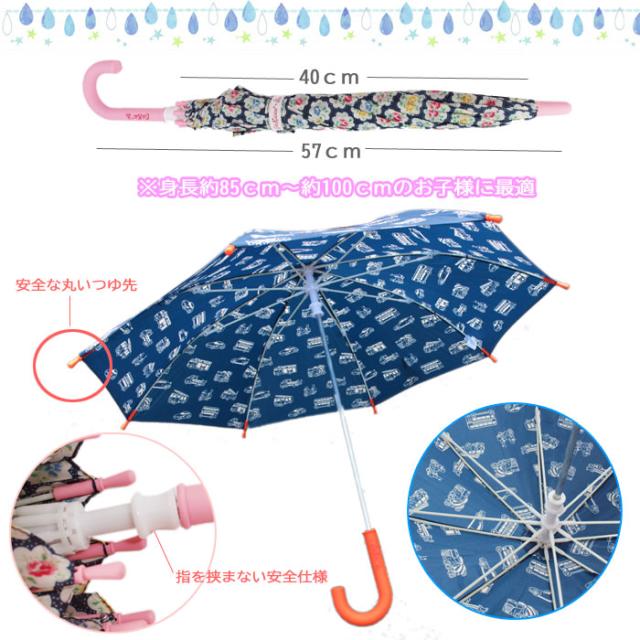特 徴適応身長/約85センチ〜100センチにおすすめの子供用長傘!