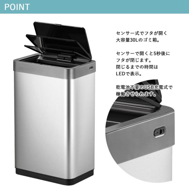 ゴミ箱 EKO 30リットル 自動 センサー式 ミラージュ X センサービン インナーあり EK9260-9451 【送料無料】USB充電式 ふた付き おしゃれ スリム 分別 自動開閉 静音 ダストボックス 衛生的 キッチン 台所 リビング 高品質 高機能 1年保証 EKO JAPAN 正規代理店