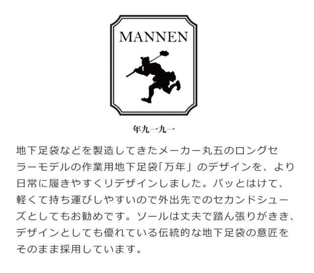 アイテム検索用キーワード:[メンズ][レディース][足袋] (ブランド)[MANNEN][丸五][MARUGO] (アイテム)足袋 足袋型 シューズ スリッポン スニーカー 地下足袋 足袋靴 たび靴 ぺたんこシューズ おしゃれ かっこいい スタイリッシュ カジュアル 素足 痛くない 外反母趾 おうちスリッポン (特徴) ペタンコ フラット ゴム底 おしゃれ 靴 シューズ かわいい 可愛い 大人可愛い 大人カワイイ ナチュラル リラックス 耐水 吸湿 可愛らしい 柔らかい 履きやすい 歩きやすい フィット 洗える 滑りにくい 清潔感 爽やか 軽やか 軽量 軽い リラックス 綿生地 デニム エスニック コンパクト 持ち運び 可能 洗える 通気性 手作業 職人