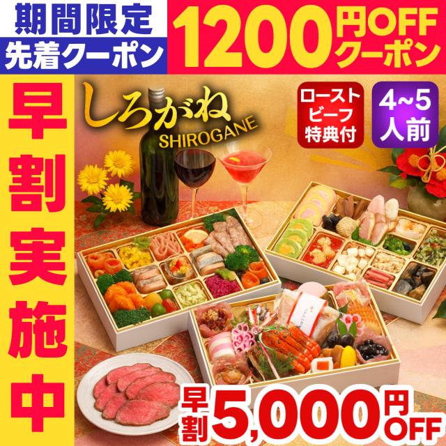 \1200円クーポン/ おせち おせち料理 2026 予約 早割 しろがね 4〜5人前 全60品 10.5寸長方 2026年 おせち 5人用 お節料理 お節 御節 冷凍 冷凍おせち 和洋おせち 和洋中おせち 和洋 和洋中 和洋折衷 洋風 美味しい おしゃれ かわいい 蔵王福膳