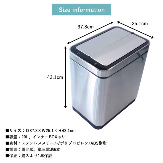 ゴミ箱 EKO 20リットル 自動 センサー式 デラックスファントム センサービン 20L EK9287-20L-6284 【送料無料】フタ付き おしゃれ スリム 分別 自動開閉 静音 ダストボックス 衛生的 キッチン 台所 リビング 寝室 1年保証 EKO JAPAN 正規代理店 agesugi_sis