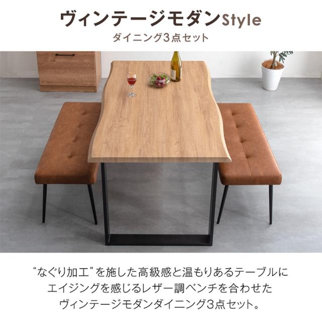 ダイニングセット 4人掛け 3点セット ベンチ 140cm テーブル 長方形 ダイニングテーブルセット ダイニングテーブル ダイニングベンチ 140 4人 おしゃれ ヴィンテージ モダン 北欧 【超大型】【後払/時間指定NG】