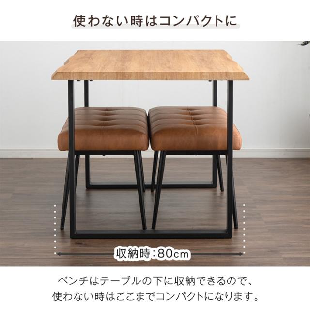 ダイニングセット 4人掛け ダイニング テーブル セット 肘付き ダイニングベンチ ベンチ 食卓テーブルセット ダイニングテーブルセット 4人掛 140 おしゃれ レトロ ビンテージ レザー 調