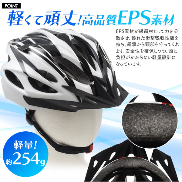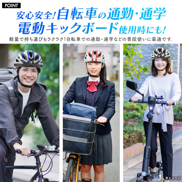 18ヵ所の大きな通気孔が十分な換気を保ち、様々な角度から風を通し、ムレにくいデザインになっています。EPS素材が緩衝材として力を分散させ、優れた衝撃吸収性能を持ち、衝撃から頭部を守ってくれます。安全性を確保しつつ、頭に負担がかからない軽量設計になっています。電動キックボードや、自転車での通勤・通学などの普段使いに最適です。