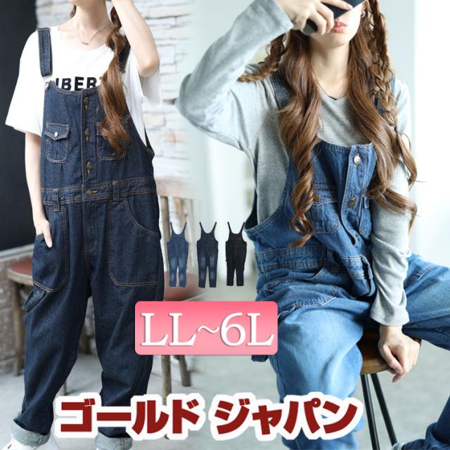 秋新作 大きいサイズ レディース オールインワン サロペット パンツ ボトムス デニムサロペットパンツ デニム サロペ つなぎ オーバーオール ジーンズ ジーパン ポケット ひげ加工 春服 夏服 秋服 冬服 通年 LL 2L 3L 4L 5L 6L ネイビー ブルー インディゴ ゴールドジャパン