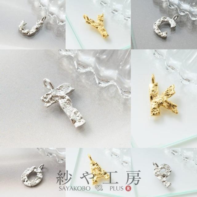 チャーム アルファベット デコボコ アクセサリーパーツ パーツ ゴールド/シルバー 13mm 1個 イニシャル アクセサリーチャーム 約1.3cm 問屋 メタルパーツ 金属チャーム 金属パーツ ハンドメイド資材 さや工房 手作り アクセサリーパーツ 卸 おすすめ