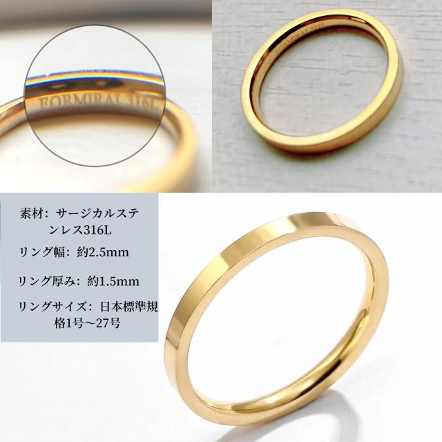 日本標準サイズ1号〜27号。リング幅:約2.5mm、リング厚み:約1.5mm。リング表面は鏡面仕上げ、内甲丸の型を採用しております。