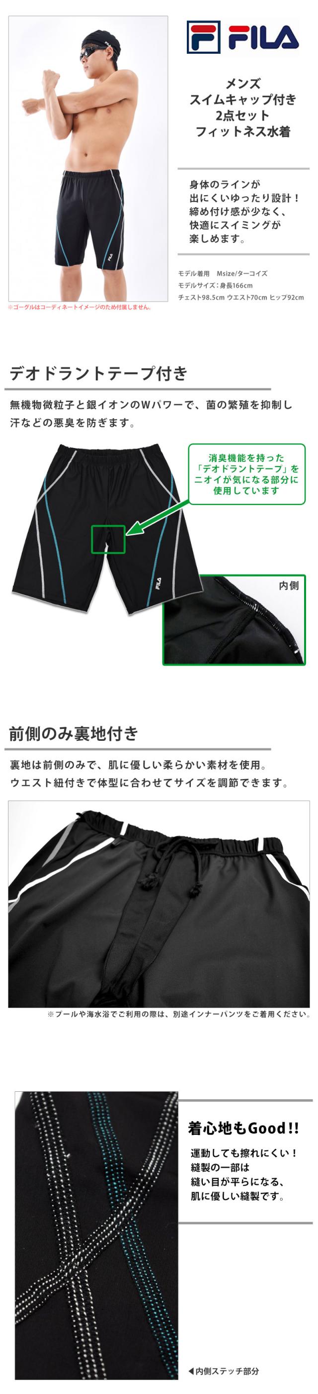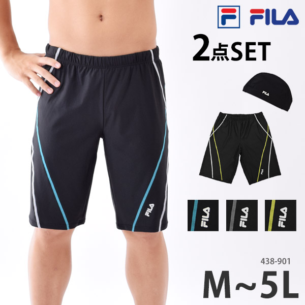 送料無料 FILA フィラ フィットネス水着 メンズ 水着 スイムキャップ 付き 2点セット 大きいサイズ M L LL 3L 4L 5L 438901 メール便送料無料 ルーズフィット スイムボトム ゆったり 体型カバー トランクス 紳士 水泳帽 スイミング 水泳 スイムウェア