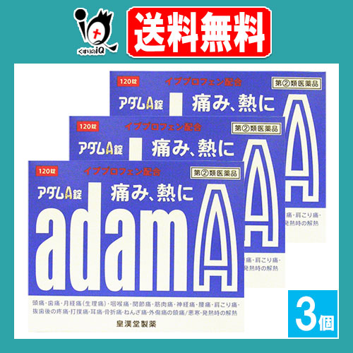 【指定第2類医薬品】★アダムA錠 120錠×3個セット【皇漢堂製薬】頭痛・歯痛・生理痛や発熱に イブプロフェン配合 解熱鎮痛薬
