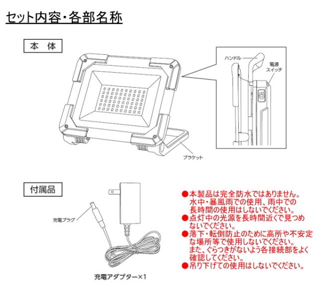 夜間・暗い場所での作業に、屋外での作業に。 ●防じん・防水等級:IP65 ●約160°照らす広角仕様 ●薄型設計:薄さ約55mm、持ち運びやすく収納もコンパクト ●連続点灯約6時間 ※LOW設定 ●場所を選ばず使える ●2段階明るさ切替 ※内蔵型バッテリーのため、電気用品安全法の規制対象外です。そのため、PSEマークはついておりません。 ■そのほかの作業灯・投光器はこちら↓ 作業灯・投光器 |