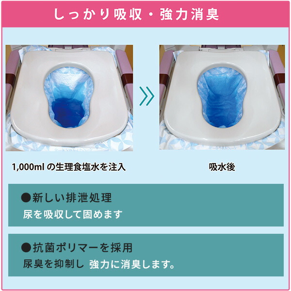 | 商品説明 | ●吸収量:約1000ml(排尿約7回分) ●特殊なギャザーシートがボール状になりバケツにぴったりセット ●尿を固めてしっかり吸収 ●気になる尿の排泄音も吸収 ●抗菌ポリマー採用で臭いを強力消臭 ●処理テープ付きなので処分も簡単 ●災害時の簡易トイレとしても使用可能 |