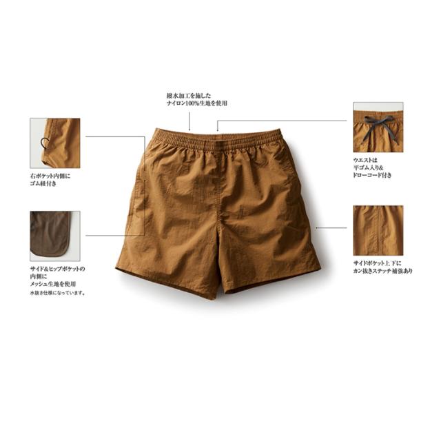 街穿きや水辺での使用も可能な、多目的ナイロンショーツ。