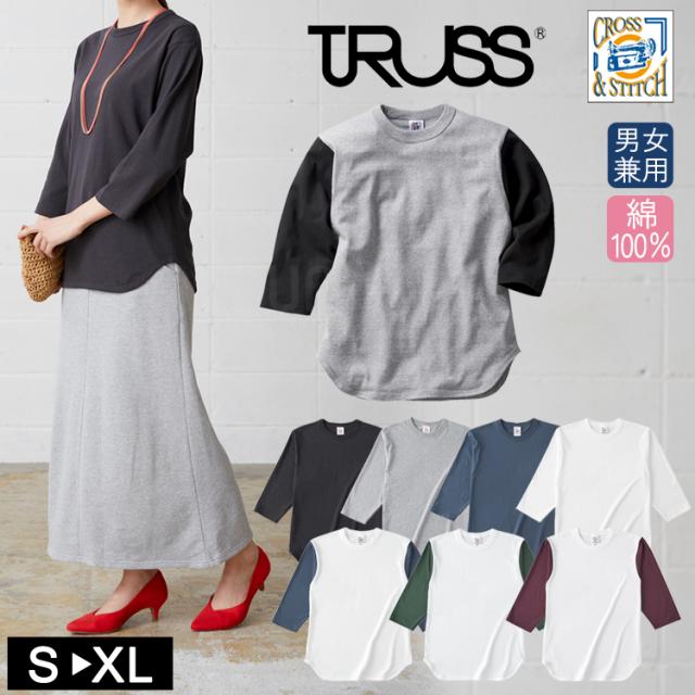 七分袖 無地 Tシャツ オープンエンド 3/4スリーブ ベースボールTシャツ 切替 OE1230 男女兼用 ユニセックス 綿100% コットン カジュアル TRUSS