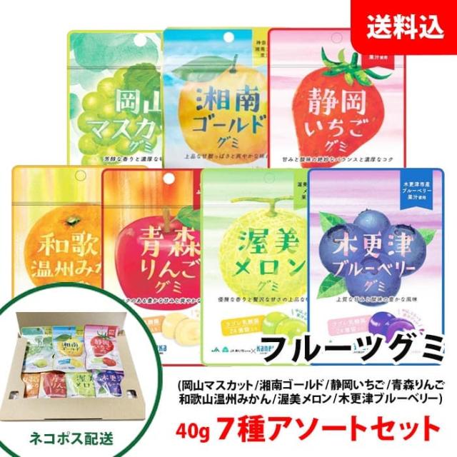 送料無料 メール便 フルーツグミ 7種アソートセット ラブレ乳酸菌 ジュレ果汁入り 果汁ぐみ カネカ食品 JA 共同開発 ご当地 お菓子 詰め合わせ