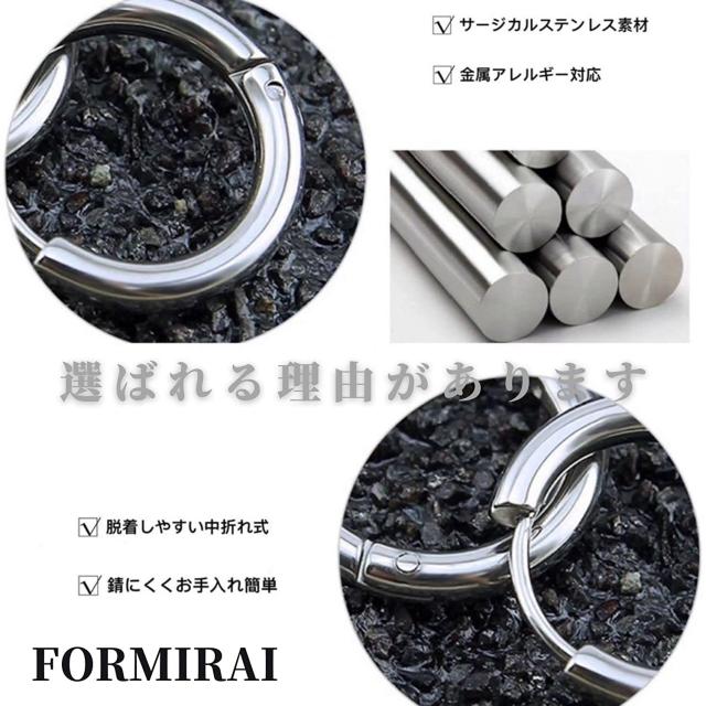 - 仕事につけていけるステンレスのフープを探していましたらこちらの商品を見つけすぐにPG.SV.BKの3点購入 若干針が太いかなと思いましたが右はなんとか着用できましたが左のピアスホールにはどうしても入ら...