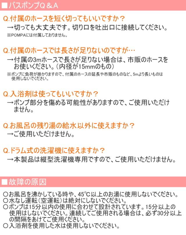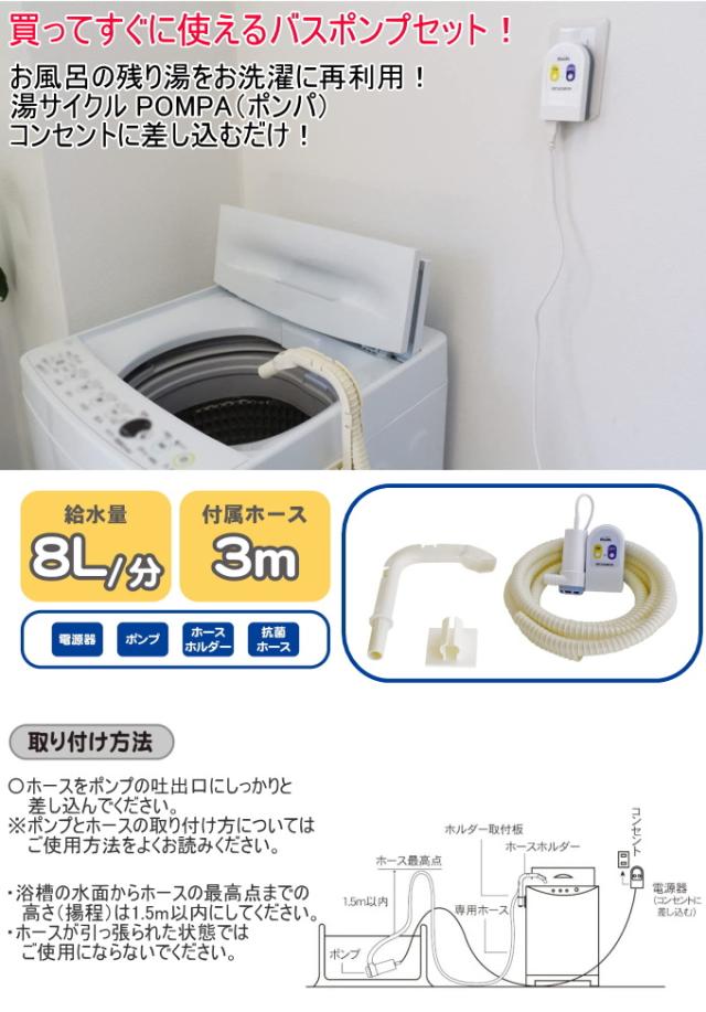 POMPA バスポンプ ホースセット BP-62 洗濯機 洗濯 洗濯用品 ポンプ 水くみ 汲み取り お風呂 残り湯 再利用 節水