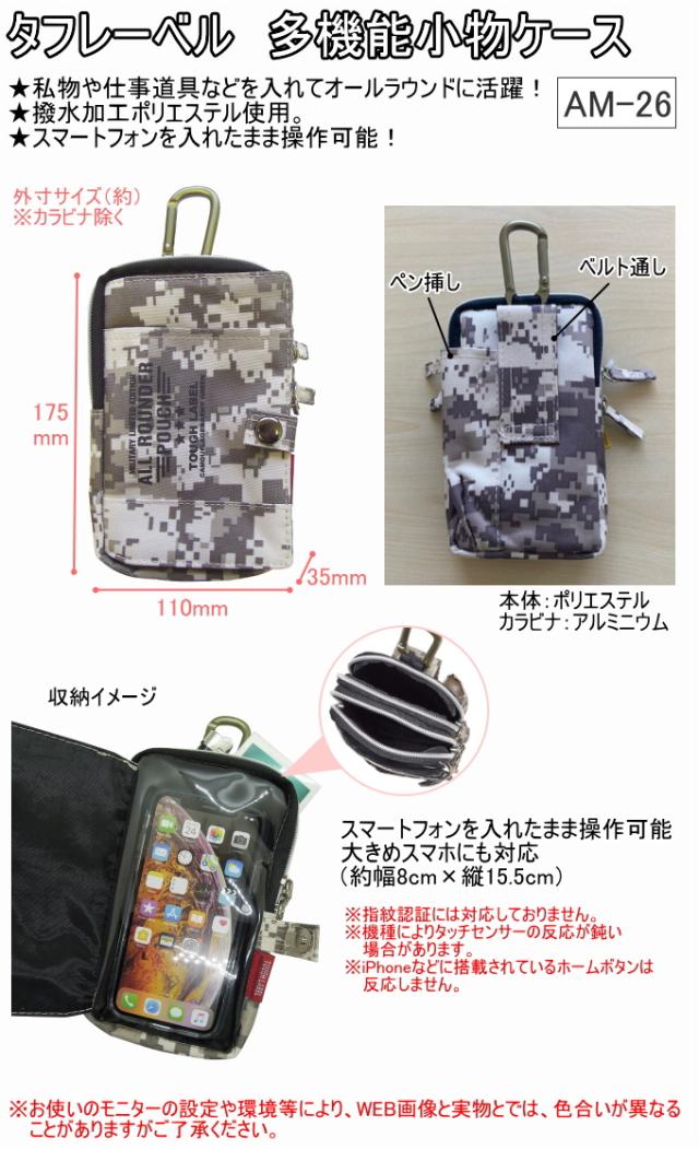タフレーベル 多機能小物ケース AM-26 携帯小物入れ 工具差し ウエストポーチ 小物入れ スマートフォン ミリタリー 迷彩柄