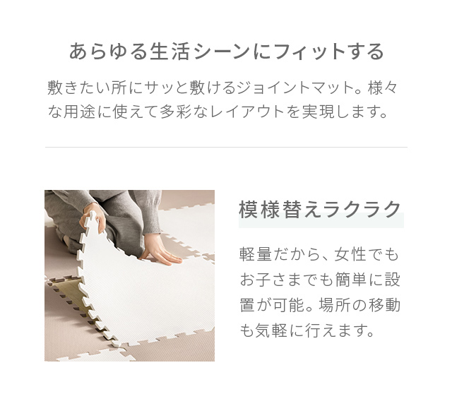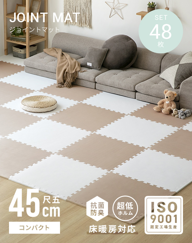 ジョイントマット ジョイント マット 48枚 45cm 厚さ1cm 約6畳 カーペット ラグ ゼロホルム 抗菌 防臭 防音 床暖房対応 おしゃれ 洗える ベビー