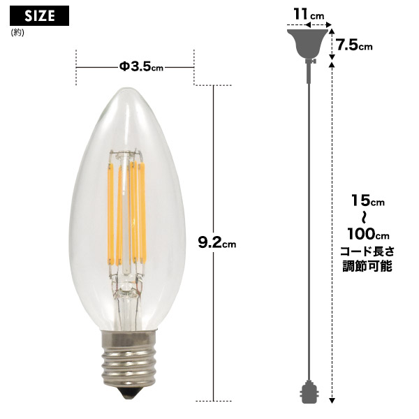 ■位相式調光器に対応!シャンデリア球40W形相当フィラメント型LED電球付き