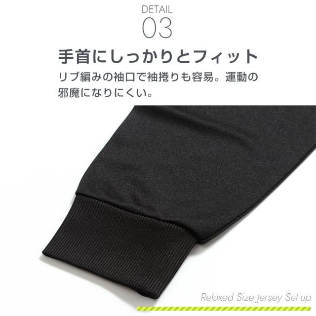 軽い運動に丁度イイ。 運動しやすいゆったりサイズのジャージ上下セット。 大きすぎず動きやすいリラックスフィットで程良いリラックス感スムーズな動きを実現。 トップスは脇腹の辺りを少し絞ったボックスシルエット。 ボトムスはお尻周りから裾までゆったりとしたワイドシルエット。 ストレッチの効いたジャージーで伸縮し、動きがスムーズに。洗濯後も乾きやすくて超便利。 風のある日は風の侵入を防ぎ、暑い日にはジップをおろして体温調節しやすいハイネック仕様。 リブ編みの袖口で袖捲りも容易。運動の邪魔になりにくい。 ワイドシルエットでもお腹にフィットするウエストはゴム仕様。ドローコードも付いて微調節可能。 運動はもちろん、カジュアルな服装やルームウェアとしても履けるゆったりとした裾幅。 |