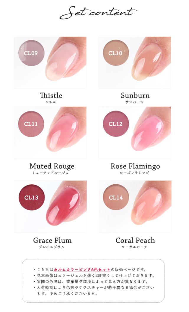 | 商品名 | カルムカラージェル ピンク系6色セット |